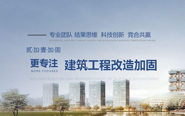 貳加壹 解決方案專業(yè)從事建筑工程改造加固技術(shù)研究及相關(guān)產(chǎn)品開(kāi)發(fā)的 產(chǎn)業(yè)的公司 提供專業(yè)的加固咨詢、加固方案設(shè)計(jì)、工程施工服務(wù) 。